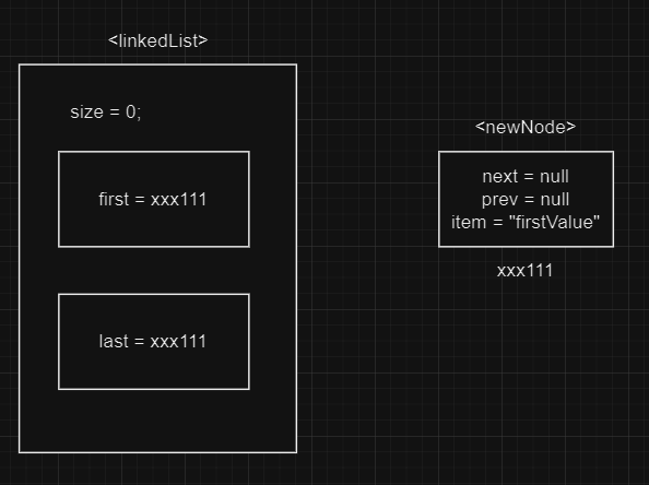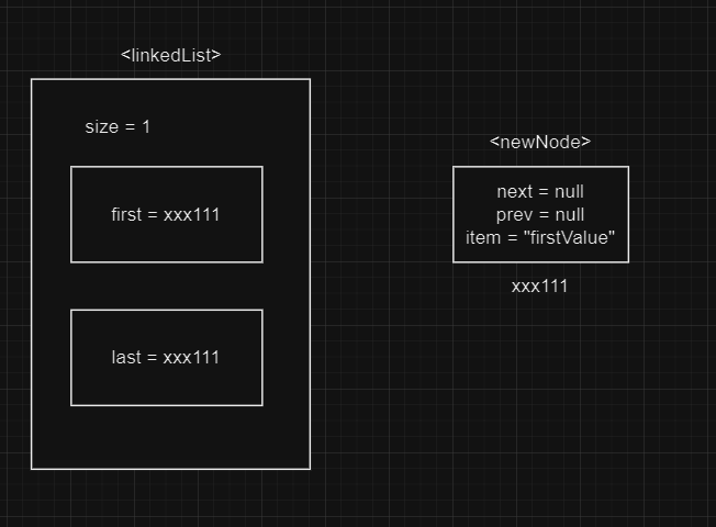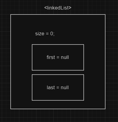 우리가 처음 LinkedList를 생성하면 다음과 같은 상황이 연출된다.