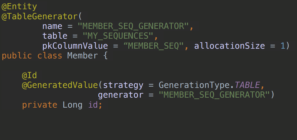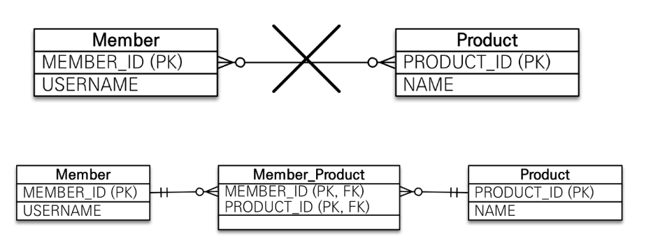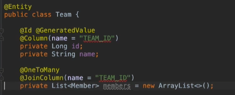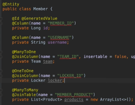 이처럼 따로 테이블이 생성되지 않고 member의 컬럼으로써 동작한다.
